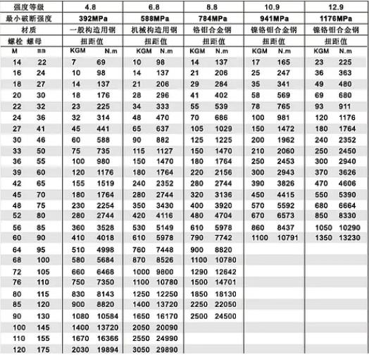 計算的時候還要注意摩擦阻力、消耗力等影響因素,在實際計算時,液壓扳手實際輸出扭矩要小于理論輸出扭矩,大家可參考上面的液壓扳手扭矩對照表。