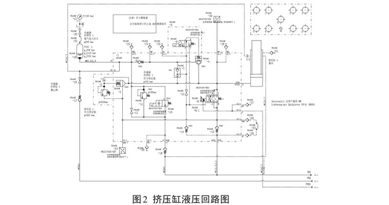 拉伸墊的擠壓力是依靠滑塊壓上拉伸墊而被動產生的壓力,壓力大小的控制由伺服閥來實現。常見的壓力下超故障有缸體活塞密封泄漏、安全閥損壞、伺服閥損壞、預充油液不足等形式。首先擠壓缸上行是依靠 20bar 的預充壓力推動活塞桿跟隨頂冠上行至上死點,由于在該過程中每個缸的壓力和位置都沒有監控,即使出現預充壓力不足、活塞沒有上行至上死點都不會故障報警,如圖2所示。在沖壓力下超故障出現以后,可以在操控面板的幫助界面查看擠壓缸預充壓力是否正常,排除預充壓力是否合適以后,再排查伺服閥以及伺服閥控制模塊。在長時間停機或者拉伸墊大修以后出現擠壓力下超故障,應優先檢查插裝式安全閥。由于插裝式安全閥控制油和系統油都是來自擠壓缸的油,而正常情況下安全閥芯都不動作,閥芯活動間隙被油泥填充,在檢修或者啟動期間,如果安全閥芯被意外開啟,復位彈簧將不能使閥芯復位。閥芯沒有復位,擠壓缸下腔的就不能建立起需要的壓力,導致故障產生。