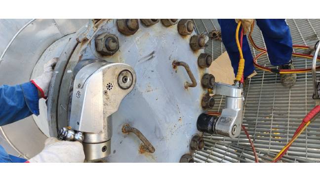 液壓扳手泵壓壓力正常,上壓驅(qū)動(dòng)部位也有反應(yīng),但卻顯示無(wú)力,帶不動(dòng)螺栓螺母,吃不上力,這個(gè)故障出現(xiàn)有三種可能。第一種,我們所要拆卸或者擰緊的螺栓扭矩遠(yuǎn)遠(yuǎn)高于我們所用扳手型號(hào)的最大輸出扭矩,也就是小馬拉大車就會(huì)“力不從心”轉(zhuǎn)不動(dòng)。另外兩種情況都出在液壓扳手驅(qū)動(dòng)部位機(jī)械故障。一個(gè)是連接銷斷裂導(dǎo)致活塞無(wú)法將力傳導(dǎo)至驅(qū)動(dòng)部件;一個(gè)是驅(qū)動(dòng)部件比如棘輪或者棘爪斷裂、嚴(yán)重磨損導(dǎo)致扳手驅(qū)動(dòng)花齒吃不上力轉(zhuǎn)不動(dòng)。
