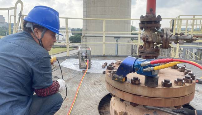 內(nèi)六角高強(qiáng)螺栓的預(yù)緊與普通六角螺栓的預(yù)緊原理是一樣的,只是設(shè)計(jì)有些微不同。內(nèi)六角高強(qiáng)螺栓有相應(yīng)的內(nèi)六角液壓扳手工具來(lái)進(jìn)行拆卸和預(yù)緊。其和普通液壓扳手的區(qū)別并不大,只是驅(qū)動(dòng)軸不同。普通的液壓扳手驅(qū)動(dòng)軸設(shè)計(jì)為四方軸,適配不同規(guī)格的高強(qiáng)套筒套在螺母上進(jìn)行作業(yè)。內(nèi)六角液壓扳手的驅(qū)動(dòng)軸外端直接為六方軸,直接將驅(qū)動(dòng)軸插入內(nèi)六方螺母進(jìn)行作業(yè),不需要再加套筒,不同規(guī)格需要配置多個(gè)規(guī)格內(nèi)六方驅(qū)動(dòng)軸。