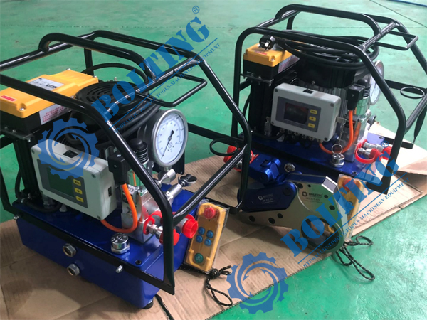 近期,波霆公司技術人員為客戶定制的無線遙控器數顯智能液壓扭力扳手泵成功問世,該液壓泵無需外接遙控器,無需為過長的遙控器電線而煩惱。