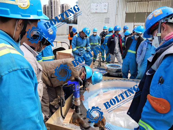 為助力青島某海洋工程有限公司建設(shè)世界最大的乙二醇模塊化項(xiàng)目,我公司技術(shù)人員身赴現(xiàn)場(chǎng)培訓(xùn)指導(dǎo)數(shù)顯電動(dòng)定扭矩扳手的使用,獲得客戶的一直好評(píng)和稱(chēng)贊。