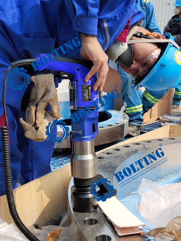 在技術(shù)人員的專(zhuān)業(yè)培訓(xùn)和解答之下,現(xiàn)場(chǎng)使用人員逐一了解數(shù)顯電動(dòng)定扭矩扳手的了解和使使用,相比之前使用的液壓扭矩扳手使用更加輕便,單人即可操作,無(wú)需更多人員陪同作業(yè),減少了大量的時(shí)間和人力。