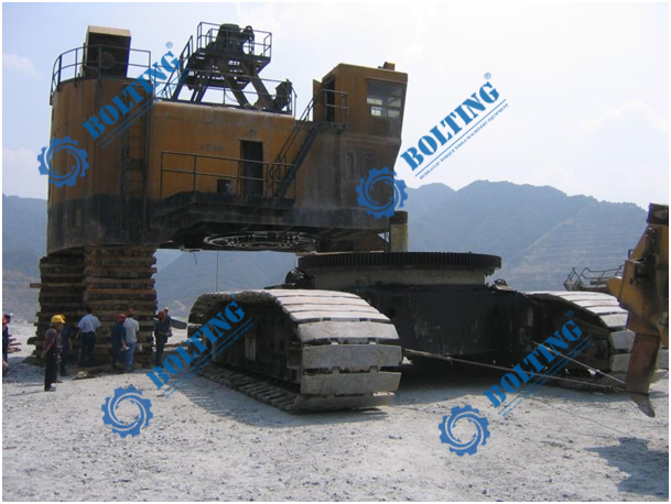 電鏟是千萬(wàn)噸級(jí)露天礦山主要采掘設(shè)備之一,生產(chǎn)率高,作業(yè)率高,操作成本低,是目前采礦業(yè)公認(rèn)的機(jī)型。電鏟由行走裝置、回轉(zhuǎn)裝置、工作裝置、潤(rùn)滑系統(tǒng)、供氣系統(tǒng)組成。鏟斗是電鏟的主要部件,它直接承受被挖掘礦石的作用力,因而磨損較大,斗桿也是電鏟挖掘過(guò)程中的主要部件之一,它的作用是連接和支持鏟斗,并將推壓作用傳送給鏟斗,鏟斗在推壓和提升力的共同作用下完成挖掘土壤的動(dòng)作;其行走機(jī)構(gòu)中最為核心的履帶裝置,經(jīng)過(guò)相關(guān)的傳動(dòng)機(jī)構(gòu)最終使其在地面直接移動(dòng)!